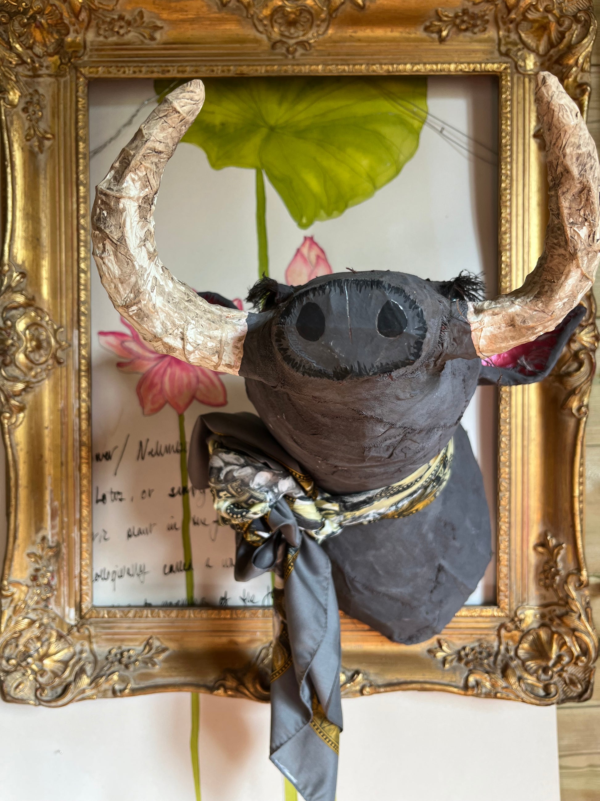 This dapper little warthog is sporting a vintage scarf and a lovely little pair of tusks!