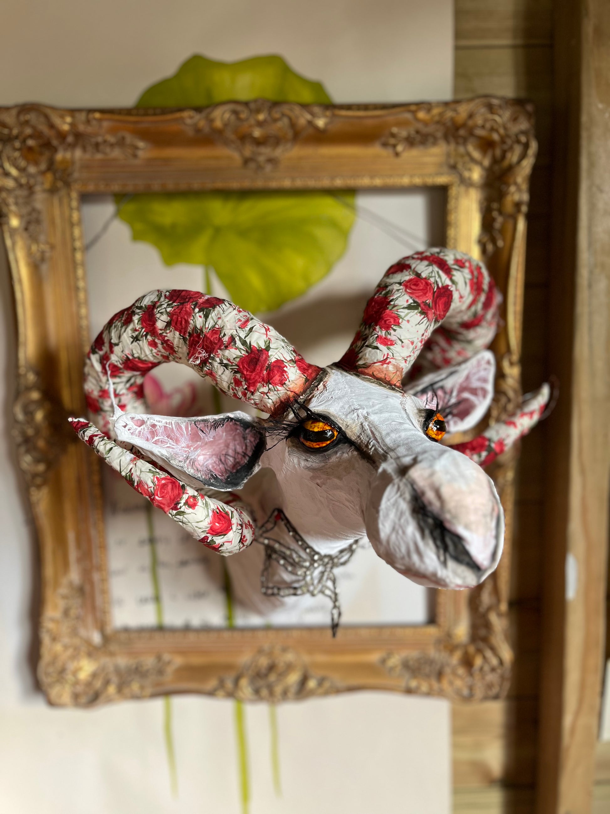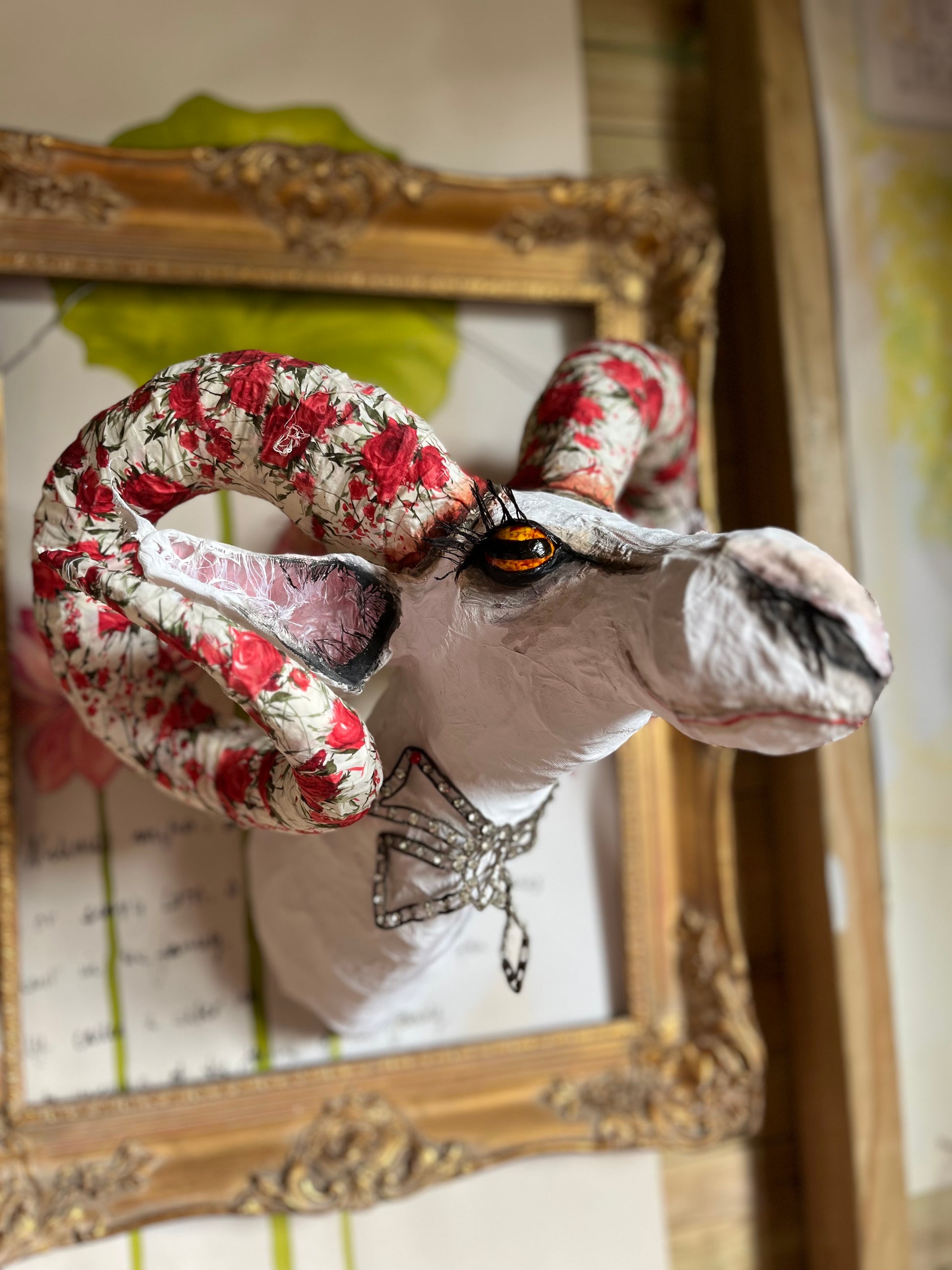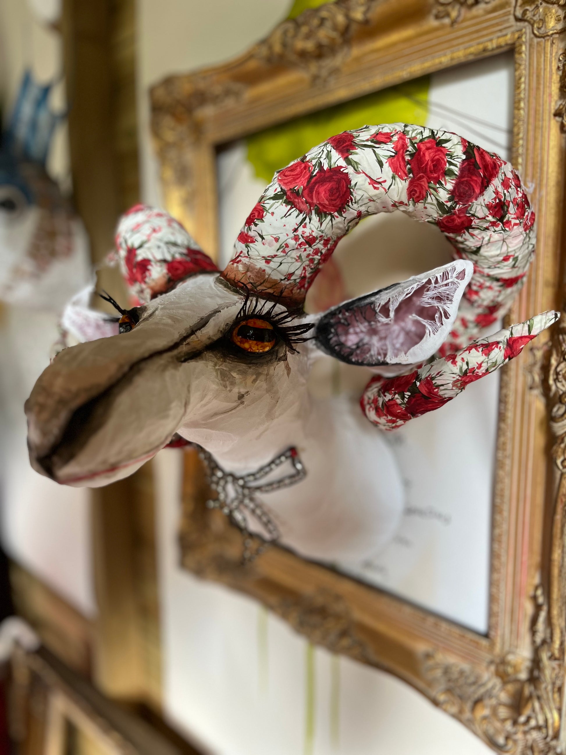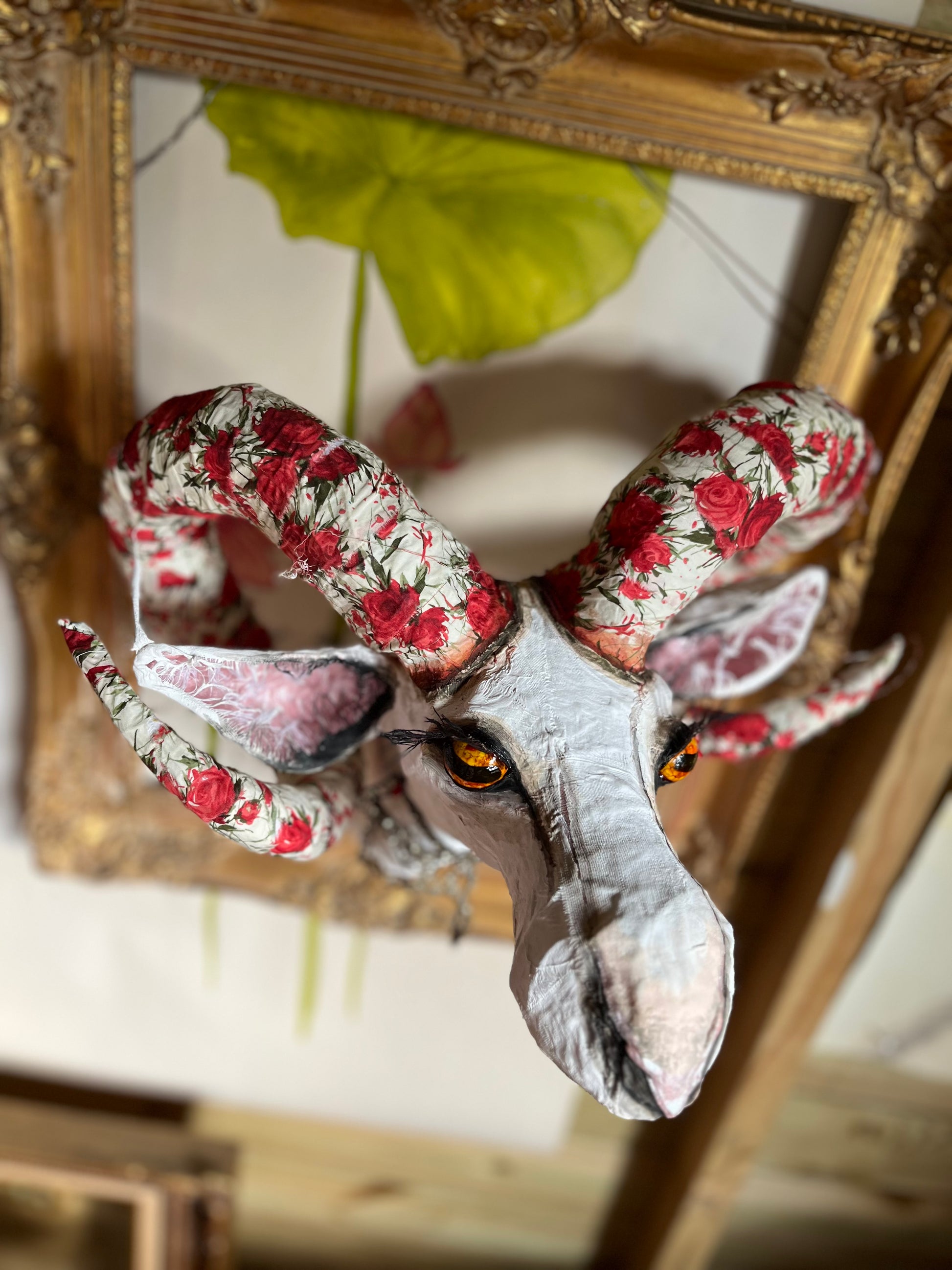 Dimensions: Approx 38cm height, 14cm head, 40cm horn to horn 35cm depth
