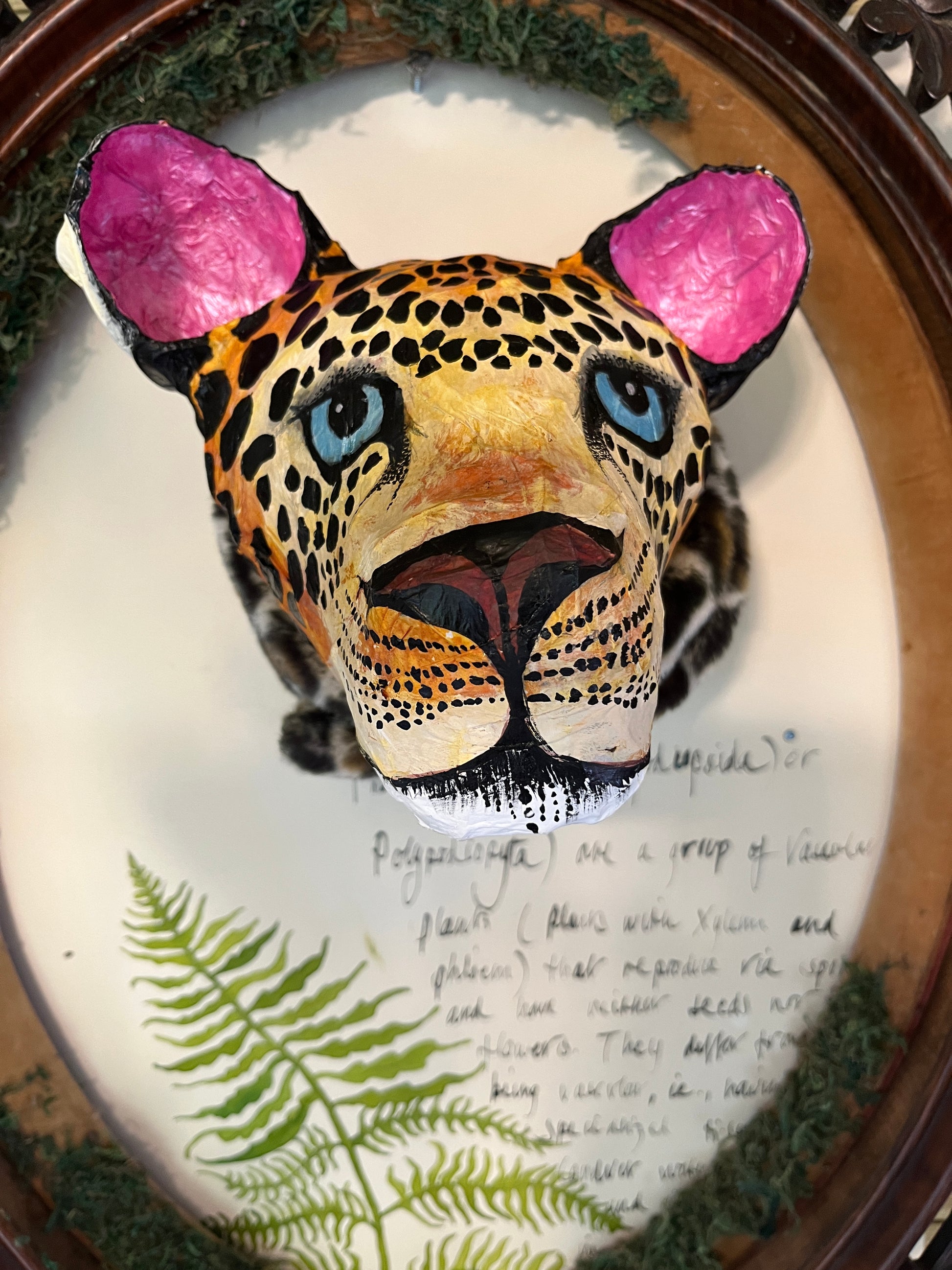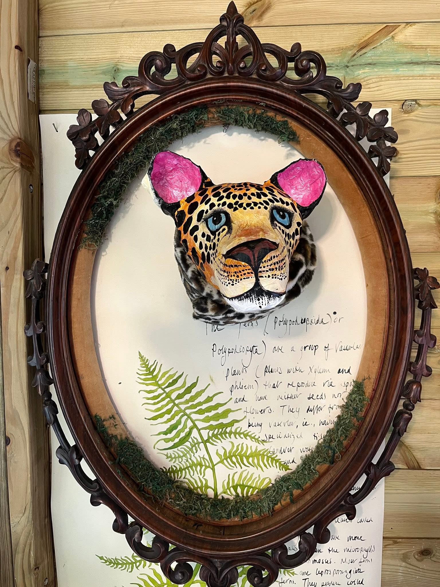 A blue eyed beauty, hand painted and wearing a faux leopard scarf!